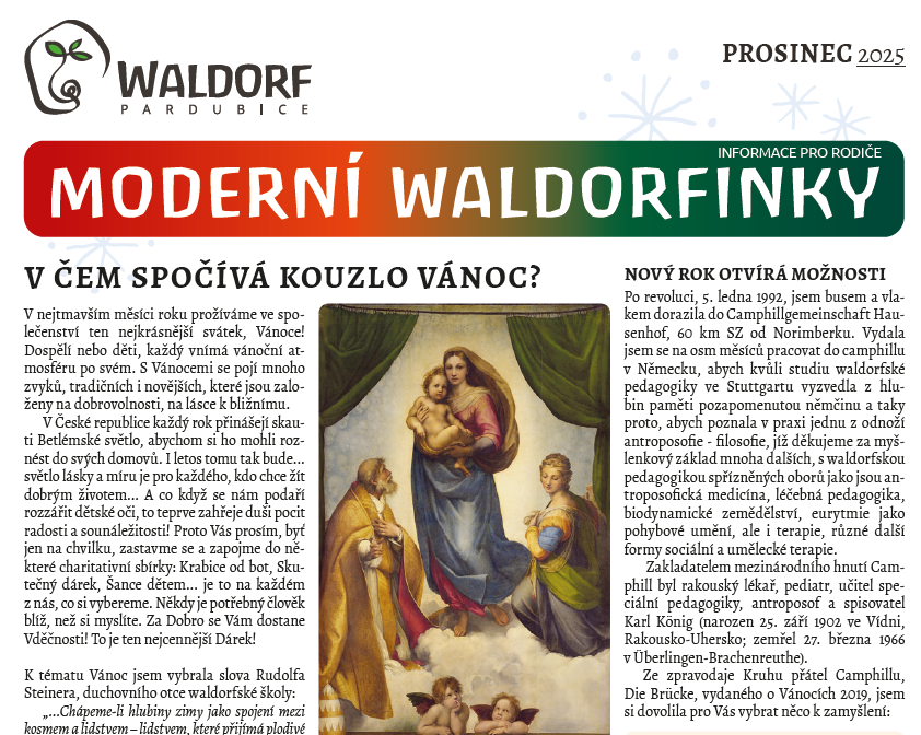 Čím aktuálně žije naše škola? Jaký byl Adventní jarmark? V čem spočívá kouzlo Vánoc? Ale i rozhovor s mentory naší školy, manželi Čápovými, nebo představení