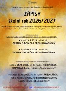 Máte doma předškoláčka a uvažujete o zápisu do naší školy? Podrobnosti najdete na TOMTO odkazu.