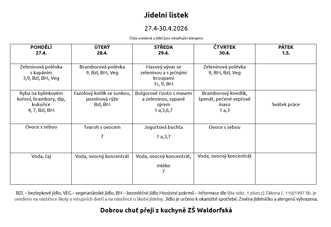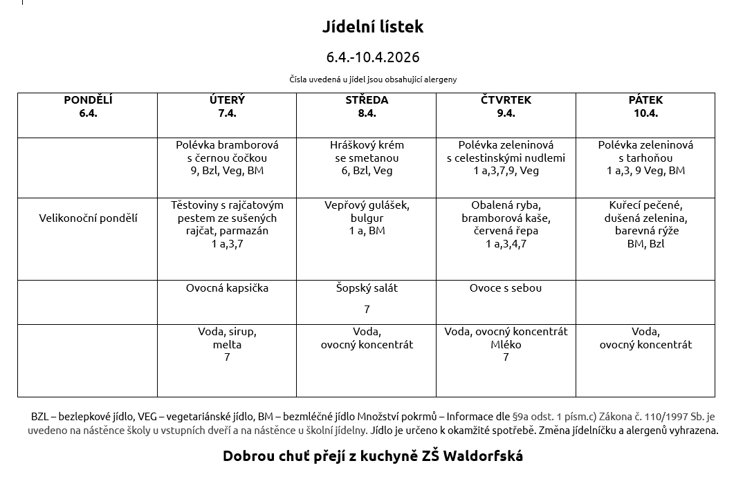 V případě nemoci – první den možnost vyzvednout do vlastního jídlonosiče. V době 11:30 – 12:00 zadní vchod do školní jídelny (zelená branka na hřiště, zde zvoňte).